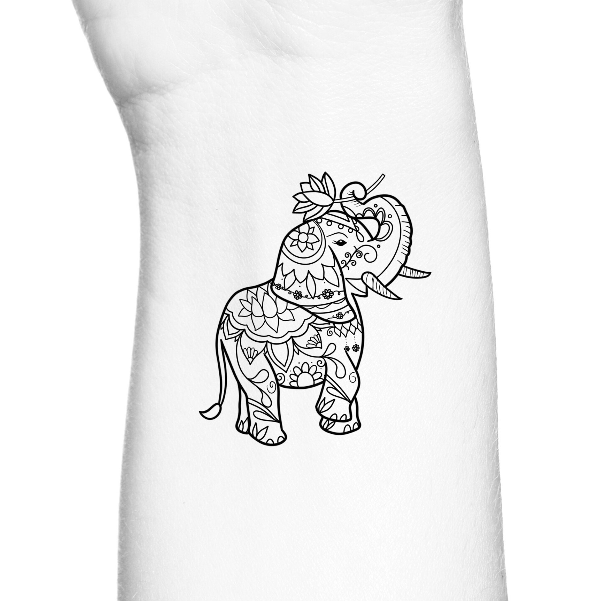 Floral Lotus Elephant Temporary Tattoo Mandala Animal Tattoo Etsy